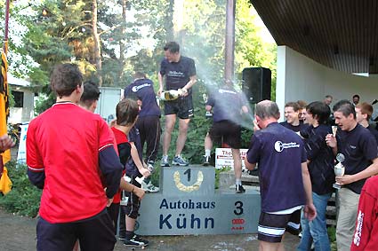 Dabei gelang es ihnen, den dritten Platz einzustreichen und damit an der obligatorischen Sektdusche auf dem Siegertreppchen teilzunehmen. Für die Kompanie traten Timo Richartz, Sebastian Schmitz, Marco De Zaan, Markus Kruff und Hans Müller in die Pedale. Als Teamchef fungierte Sascha Schreiber.