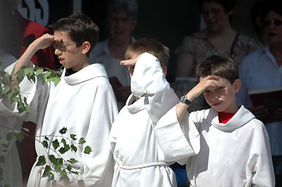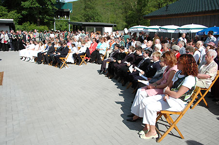 | Die Einsegnung fand in Zusammenhang mit der Fronleichnamsprozession bei hochsommerlichen Temperaturen statt. Zahlreiche Gemünder sowie Freunde und Gönner des Vereins wohnten der Veranstaltung bei. |