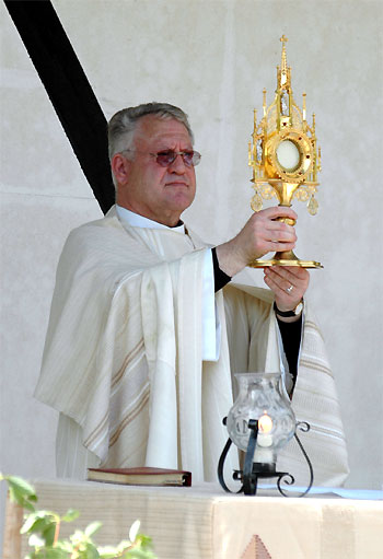 | Pfarrer Rolf Knips zelebrierte den Fronleichnams-Gottesdienst auf dem Schützenplatz. | ||||||||||||||