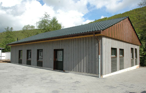 | Das neue Schützenhaus: Der Bruderschaft steht ein großer Aufenthaltsraum zur Verfügung, der durch eine mobile Trennwand in zwei Räume unterteilt werden kann, so dass gleichzeitig zwei Kompanien schießen können. Weiterhin sind großzügige sanitäre Anlagen sowie eine Küche vorhanden. Der Raum zum Schießstand wurde ebenfalls so bemessen, dass Kleinkaliber- und Luftgewehrschützen ausreichend Raum finden. Umfangreiche Innenaufnahmen werden wir in Kürze für Sie aufbereiten und hier darstellen. |