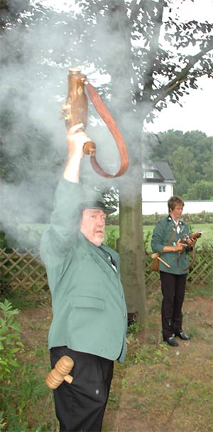 | Die Böllerschützen der Schützenbruderschaft aus Nettersheim bereicherten den Ausklang des Festumzugs. Mit einem ohrenbetäubender Salut wurden die zahlreichen Ehrengäste von den fünf Schützen Willkommen geheißen. |