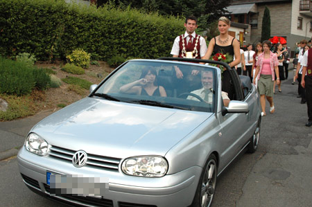 | Während das Königspaar Ernst und Sylvia Mauel den Festzug in der offenen Kutsche genoss, rollten Prinz Andreas Mertens und Prinzessin Carolin Kammers motorisiert dem Kursaal entgegen. |