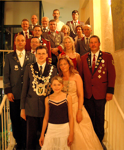 | Unter anderem nahm der Ehrenvorsitzende Horst Freimark den Vorbeimarsch ab, gefolgt vom Königspaar und dessen Ministern. |
