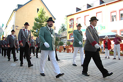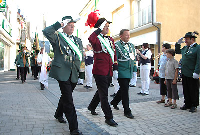 Die Bezirksbruderschaften nahmen mit einer Fahnenabordnung am Vorbeimarsch teil. Dieser wurde von Bezirksbundesmeister Hermann-Josef Jakobs, Brudermeister Christoph Kammers und Diözesanbundesmeister Kurt Bongard abgenommen.