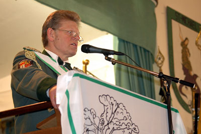 In seinem Grußwort ging Landrat Günter Rosenke auf die Historie des Bezirksverbandes Schleiden ein, der seinen Ursprung 1932 fand, als der Gemünder Bürger-Schützenverein in die Erzbruderschaft vom heiligen Sebastianus aufgenommen wurde. Der erste Vorsitzende dieses Verbandes, dem auch die Schützengilde Marmagen angehörte, war der damalige Bürgermeister Josef Töchters. In den dreißiger Jahren schlossen sich neben den Rochus-Schützen aus Wahlen auch die Bruderschaften des Kreises Monschau an.