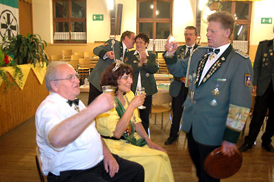 Nach dem Festumzug begrüßte Bezirksbundesmeister Hermann-Josef Jakobs beim Festkommers im Dahlemer Bürgerhaus neben Schirmherr Landrat Günter Rosenke das amtierende Diözesankönigspaar der Diözese Aachen, Reiner und Christiane von der Bank aus Lobberich, sowie Vertreter der Lechenicher St. Sebastianus-Schützen und der benachbarten Bezirksverbände Monschau, Stolberg, Aachen-Land Süd und Würselen. Auch die Bürgermeister aus den Heimatkommunen der Bruderschaften des Bezirksverbandes Schleiden, darunter auch Christian Krings aus St. Vith, wohnten der Feierstunde bei.