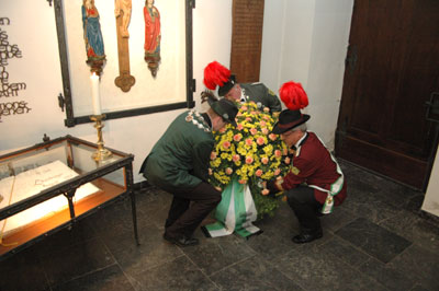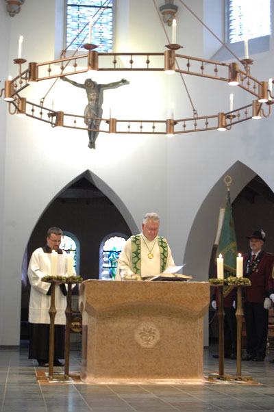 Unser Präses Rolf Knips feierte die Messe, bei der auch die Kranzniederlegung für verstorbene Mitglieder des Schützenvereins und der Pfarrgemeinde stattfand.