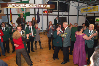 Ehrentanz der neuen Majestäten in der Schützenhalle mit dem Königspaar Wido Schmidt und Königin Nicole Aengenheister, Kaiserpaar Rainer und Ute Schmitz und Ex-König Dieter Feyerabend mit Anita Schmitz |