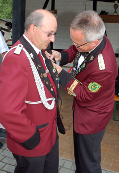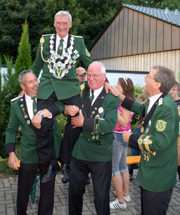 Nach dem 34. Schuss auf den Rumpf war es dann klar. Eckhard Schroeder, 68 Jahre alt, Maschinenbauer und Hauptmann der Hubertus-Kompanie ist neuer Schützenkönig.