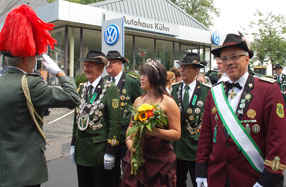 Der letzte Festzug als Königspaar sollte es für Ecki und Jessica Schroeder sein, als Oberst Rainer Schmitz am heutigen Montag das Regiment am Hermann-Kattwinkel-Platz um 14:30 Uhr antreten ließ.