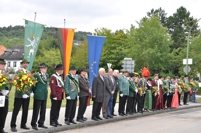 | Trotz alledem das die Schützen am Vorabend auf dem Tiroler Abend bis 03:30 Uhr gefeiert hatten, trat das Regiment am Sonntag pünktlich um 10:30 Uhr an der alten Schule in Gemünd an. Oberst Rainer Schmitz führte den Festzug zu dem morgendlichen Frühschoppen in die Schützenhalle. Dort spielten dann die Eifelklänge Herhahn-Morsbach zum Auftakt des Schützenfestsonntags. | |||||||||||||||||