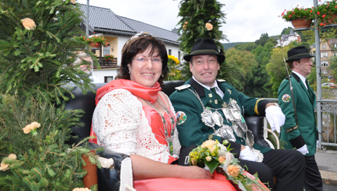 | oben: Die Markus-Müller-Schülerprinzenpokalsiegerin Isabell Knie aus der Lukas-Kompanie. links: Unser neues Bürgerkönigspaar 2011-2012 Sonja Schröders mit Ihrem Prinzgemahl Raymund Schröders |