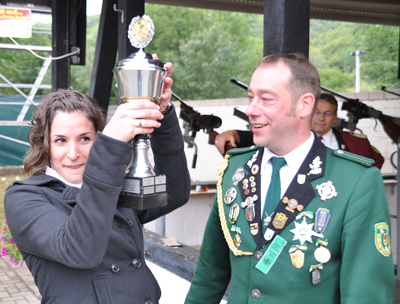 | Die Siegerin des diesjährigen Markus-Müller-Schülerprinzenpokalschießen heißt Isabell Knie aus der Lukas-Kompanie. Isabell schoss mit dem Luftgewehr zwei Schuss aufgelegt und zwei Schuss angestrichen auf eine Distanz von 10 Metern. Sie erreichte 37 von 40 möglichen Ringen und konnte sich somit gegen Ihre 11 Mitstreiter durchsetzten. Beim Ludwig-Cremer-Jungschützenpokal konnte Celina Wiedemeyer mit 38 von 40 möglichen Ringen den Sieg für sich entscheiden. Hier wurde in diesem Jahr auch mit dem Luftgewehr geschossen. Der Kleinkaliberstand und somit die 50 Meterbahn stand zur Zeit des Wettbewerbs wegen reparaturarbeiten nicht zur Verfügung. Geschossen wurden hier auch vier Schuss angestrichen auf eine Distanz von 10 Metern. | |||||||||||||||||