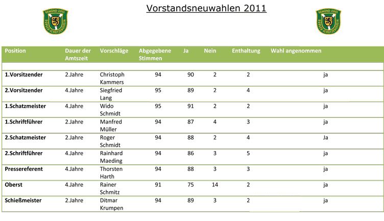 Nach der geheimen Vorstandswahl wurde der durch die Jugend am 17.12.2011 gewählte Jungschützenmeister