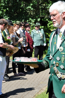 Die obligatorische Runde vom noch amtierenden König Reiner Müller am Montag durfte natürlich nicht fehlen. Auch wenn er selber durch Krankheit nicht am Schützenfest hatte teilnehmen können. ( Von hier aus nochmals alles Gute und gute Besserung, lieber Reiner ) Seine Königs-Kompanie versorgte das Regiment, nachdem dieses am Schützenplatz angekommen war.