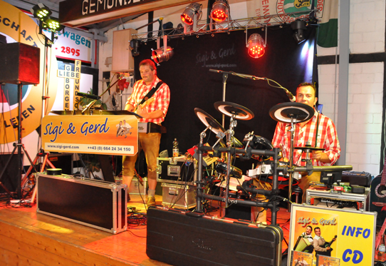 Kaum zu glauben....wenn man nicht selbst da gewesen ist. Die zwei Gaudi Musikanten Siggi und Gerd aus dem Pitztal sind nicht nur Mutlimusiker, sondern auch gekonnte Komiker. Wenn Sie nicht einen gigantischen Hit nach dem anderen in die überfüllte Schützenhalle schallen ließen, machten sie dazwischen auch noch gekonnte Gaudi. Ob mit der "Quetsch" (dem Akkordeon), der Gitarre, auf dem Keyboard oder am Schlagzeug, alles beherrschten die beiden aus dem Pitztal im FF. |