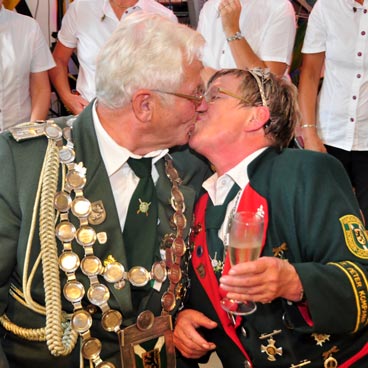 Kurt Rupp von der St. Peter-Kompanie ist der neue Gemünder Schützenkönig. Mit dem 15. Schuss aus der großkalibrigen „Donnerbüchse“ auf den Rumpf des Königsvogels sicherte sich der Nierfelder die Königswürde und wurde anschließend frenetisch gefeiert. Anschließend legte im der scheidende König Thorsten Hart die Ehrenkette um den Hals, die Rupp nun ein Jahr klang bei allen Auftritten in Uniform tragen wird.