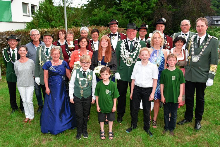 Zweite Reihe von rechts, Schützenkönig Alex Büsch mit Gattin Marion und Söhnen,