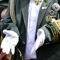 | Am Schützenplatz bedankte sich unser Oberst Rainer Schmitz nochmals für die starke Beteiligung an den Festzügen und zusammen mit dem Regiment dem scheidenden König Kurt Rupp für sein Königsjahr mit einem