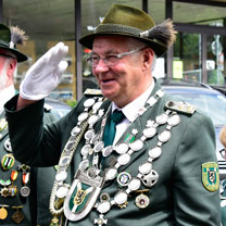 Alex Büsch "44 Jahre alt", ist 25 Jahre Hauptmann der Markus-Kompanie, Alex feiert in diesem Jahr sein 30 Jähriges Mitgliedsjahr im Schützenverein , er ist Verheiratet und Vater von 2 Söhnen, die ebenfalls durch und durch Schützen sind.
