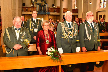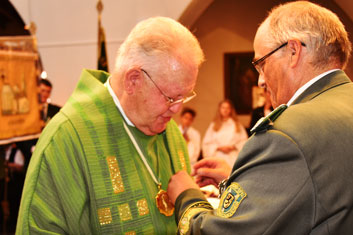 Die hl. Messe zelebrierte i.R. Pfarrer Rolf Knips, der in diesem Jahr seit 25 Jahren der Bruderschaft treu zur Seite steht. Dafür wurde er vom 1. Vorsitzenden Ditmar Krumpen während der hl. Messe mit dem Orden für 25 Jährige Mitgliedschaft ausgezeichnet. Während der Messe wurde der Gefallenen und Toten der Bruderschaft gedacht und ein Kranz zu ihren Ehren niedergelegt.