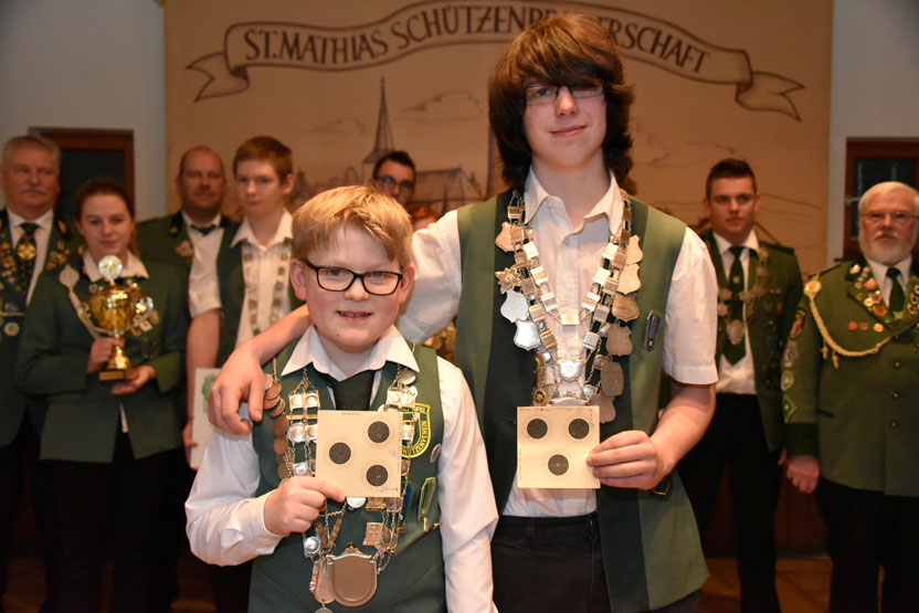 Denise Hubertz (15 Jahre) aus Dahlem erzielte genau wie Leon Porsche (12 Jahre) aus Gemünd, 27 von 30 möglichen Ringen. Hier hatte aber Leon das bessere Schussbild und siegte Ringgleich vor seiner Kontrahentin.
