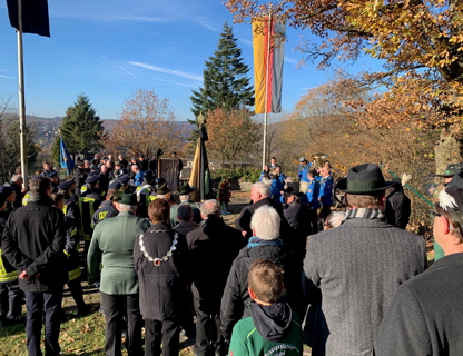 An der traditionellen Gedenkfeier zum Volkstrauertag beteiligten sich am 18. November 2018 die Schützen der Gemünder St. Sebastianus Schützenbruderschaft. Gemeinsam mit Vertretern der Feuerwehr, dem Bundestagsabgeordneten Markus Herbrand, der Schützenkönigin Hanni Rupp und dem Vereinsvorsitzenden Ditmar Krumpen, legten Sie in Erinnerung an die Opfer der beiden Weltkriege dabei mehrere Trauerkränze nieder.