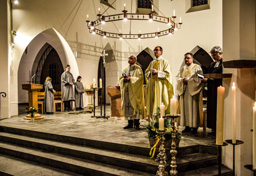Gestern Abend wurde unsere Pfarrkirche St. Nikolaus 18 Monate nach der Flut mit einem feierlichen Gottesdienst durch Weihbischof Karl Borsch, Pfarrer Philipp Cuck und unseren Präses Diakon Klaus Hövel wiedereröffnet. Auch der evangelische Pfarrer Erik Schumacher nahm an der Messfeier teil und überbrachte seine Glückwünsche.